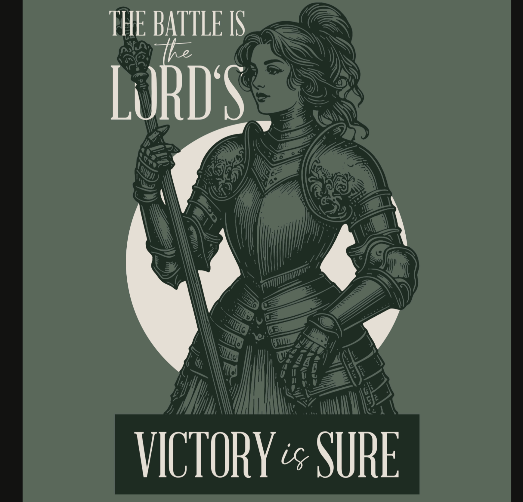 Front design: “Battle Girl” graphic with text: The Battle is the Lord’s / Victory is Sure